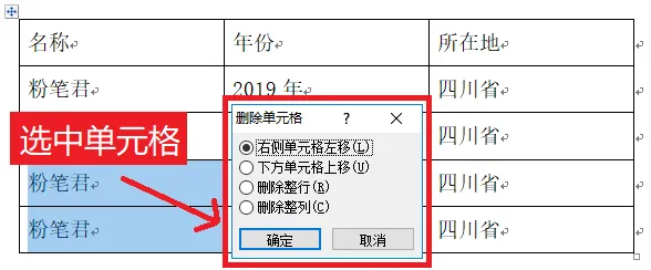 (3)选中单元格,按backspace键可以调出“删除单元格”的小窗口,然后可以根据需要选择删除选项。