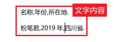 ①找到需要转换为表格的文字内容,把所要转换的文字内容按列用英文状态下的逗号隔开;