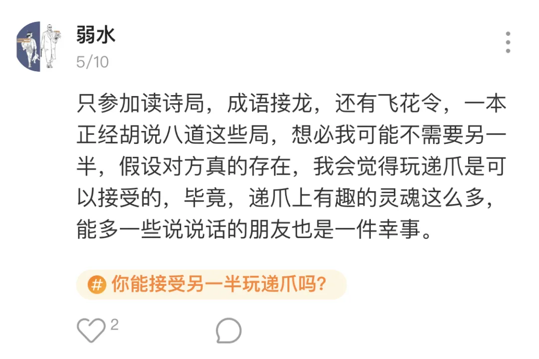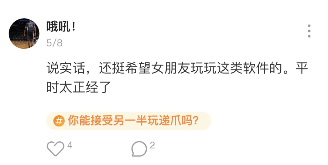 但听我解释!递爪真的是一个不太一样的交友APP。前几天我们在广场发起了一个话题“你能接受另一半玩递爪吗?”,大家的回答让我们站稳了“纯洁社交”的脚跟👇
