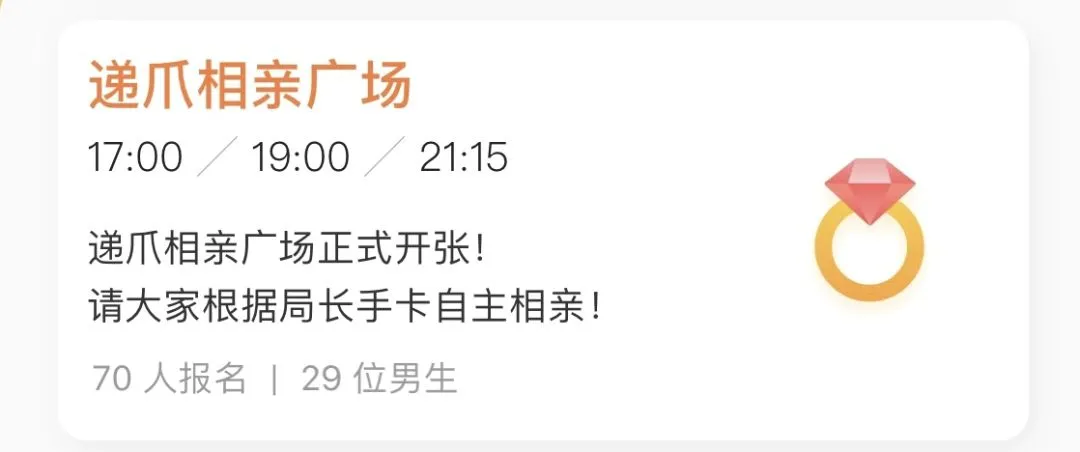 “递爪相亲广场”就是这样一个地方,你会发现这个相亲广场和其他社交APP很不一样,不仅仅因为用户质量更高,还因为在递爪,成为恋人之前,先会成为朋友👇