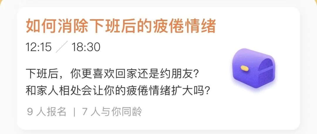 当然啦,作为一个关爱社畜的社交APP,我们还有许多社畜友好的聊天局,帮大家调节心情,增益技巧,和工作和谐共处👇