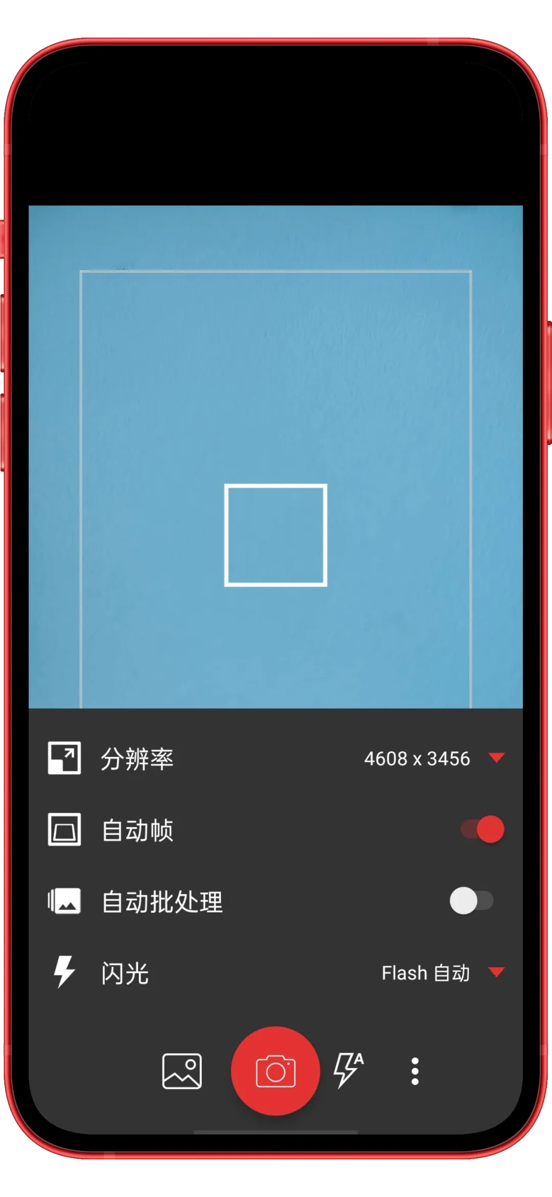 而且对于拍摄的图片的参数也可以设置,图片分辨率,自动帧,自动批处理,是否开启闪光灯等 ▼