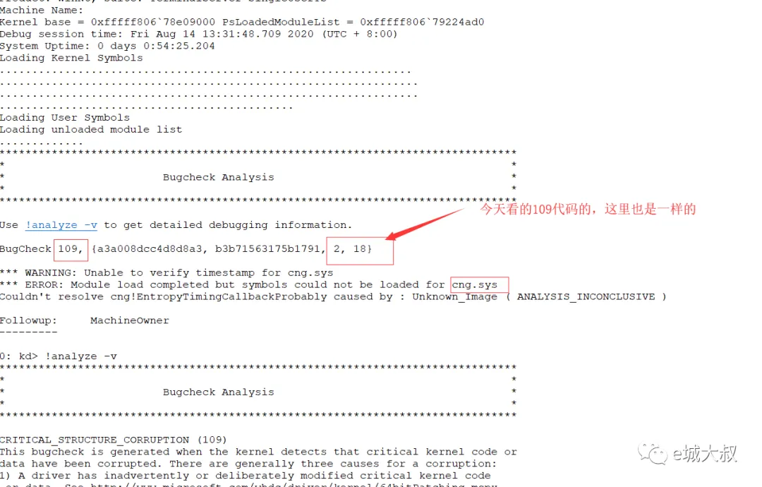 8.11那天,QQ用户MfyGzS靓联系我,说10多家网吧都蓝屏,让我分析下蓝屏DUMP,说是都是109代码的蓝屏,这个109代码的蓝屏几乎分析不出来的,只可以取消可以取消的软件排查的。