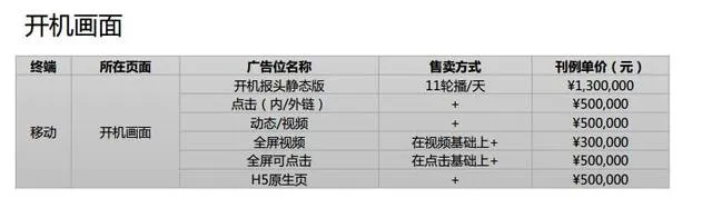 以新浪微博为例,萝卜哥翻查了一下《2018年Q1微博报价单》,其启动页广告是11轮播/天,刊例的单价为130万元,如果再加上可以点击的内外链接,动态视频等,一个刊例的广告价格甚至可以达到360万元。