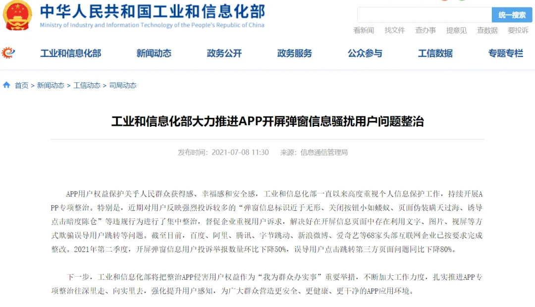 近日,工信部宣布了一件大快人心的事情,工信部将针对有关开屏广告投诉较多问题进一步开展专项整治活动并督促企业解决问题。