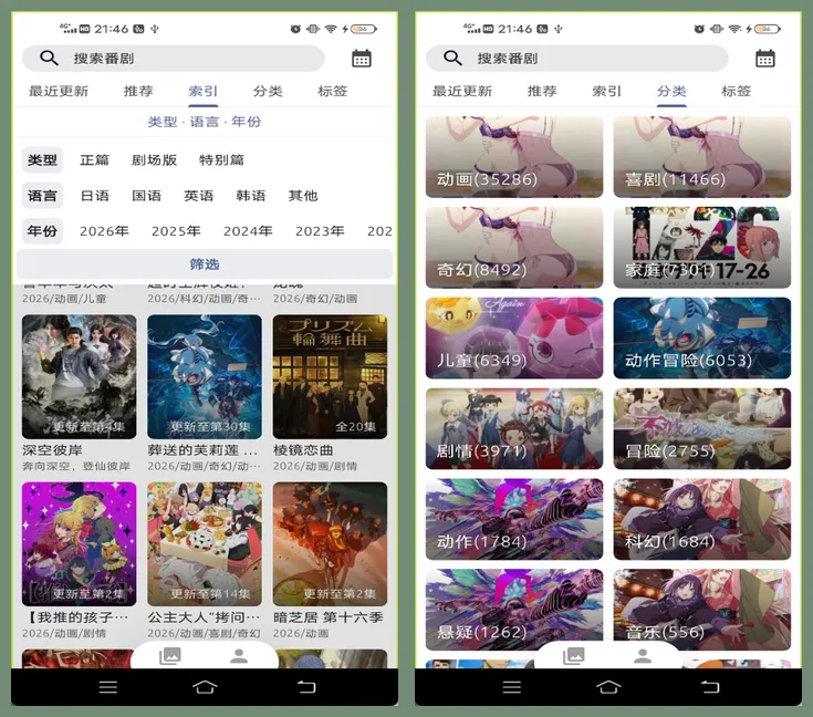 软件支持索引和分类筛选,可以根据地区、风格和时间来寻找到自己喜欢的番剧,不管是最近热门的番剧还是比较久远的经典番剧都能直接找到。