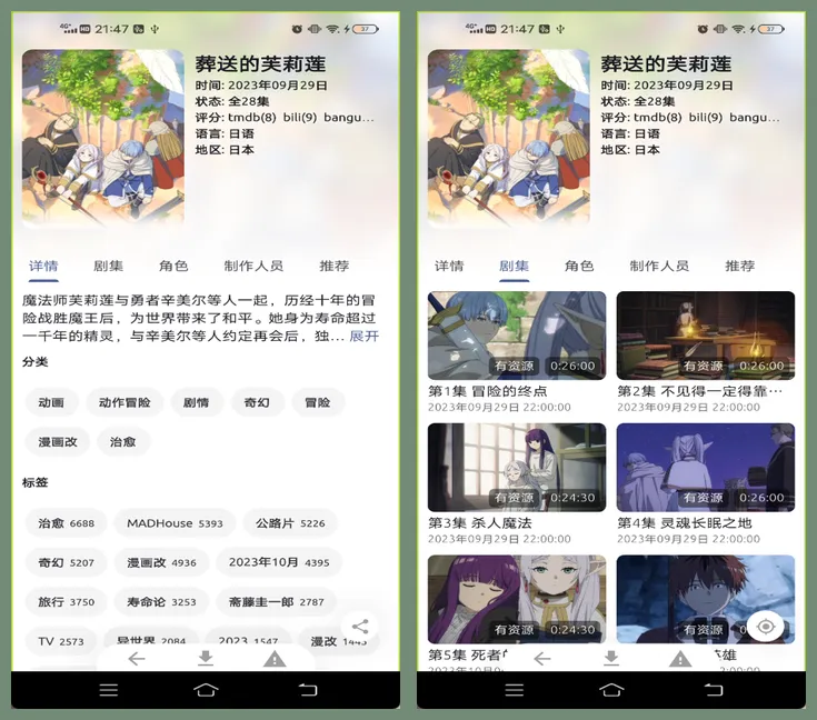番剧详情里面的信息都是非常全面的,有清晰地列出简介等各种信息,点击剧集就能看到每个分集的播放链接。