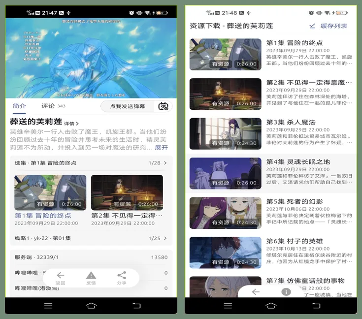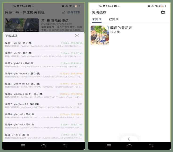 这里我们只需要点击想要缓存的集数,然后选择一个比较快的线路就可以了,一般好的线路不到几分钟就能下载完一集,速度也是杠杠的。