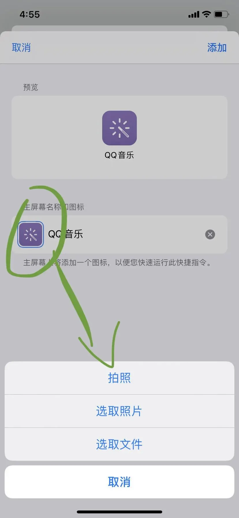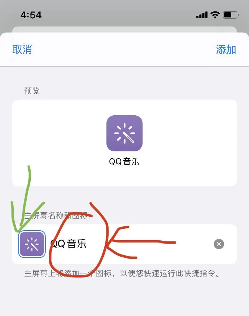 ②修改快捷指令名称:比如“QQ音乐”