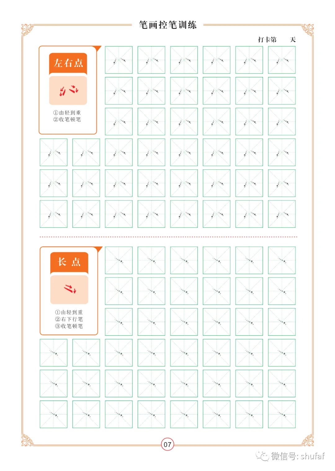 点阵控笔训练电子版字帖共22页,无水印高清PDF文档,添加朋友 微信号:shufaee 购买