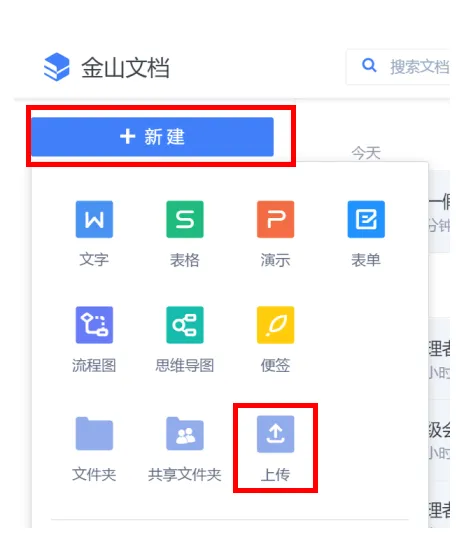 4.在界面内点击新建,然后选择上传文件。