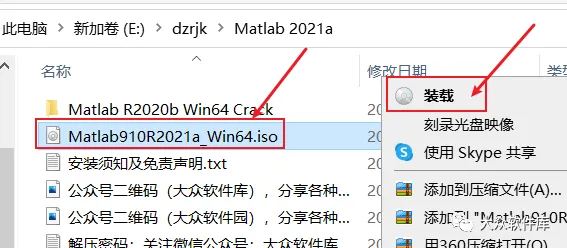 2.右键Matlab910R2021a_Win64.iso点击装载;