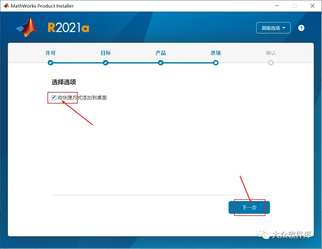 12.勾选添加到桌面,然后点击下一步;