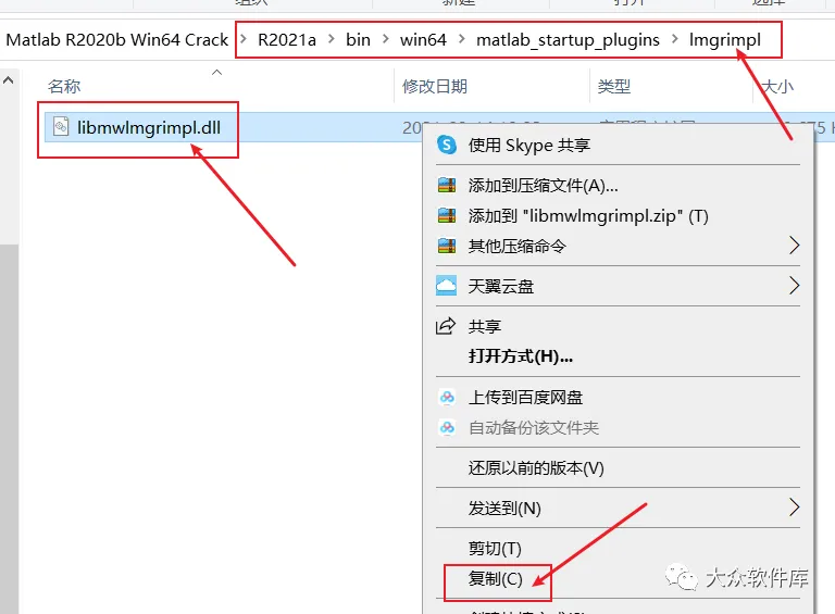 17.看图中的路径,复制libmwlmgrimpl.dll文件;