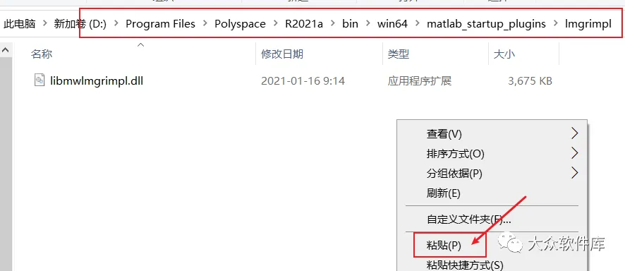18.在软件的安装路径中依次打开如图中的路径,在Imgrimpl文件夹下的空白位置点击粘贴;