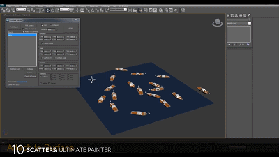 用户可使用Ultimate Painter在网格或曲面上绘制和分布对象(副本或实例),通过随机控件、碰撞检测、附加表面等绘制所有大型对象(几何体、辅助对象、代理对象等)。