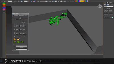 在进行建筑、游戏电影和商业广告的工作时常常需要使用一些资产为场景添加细节,手动放置的过程非常繁琐,需要花一些时间调整才能看起来自然一些。虽然可以利用MassFX模拟,但时间仍然是一个问题。而使用Physx Painter 工具会极大地改善工作流程,帮助用户在短时间内创建出更为逼真的场景。
