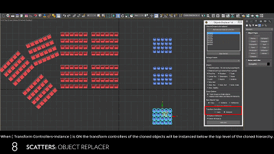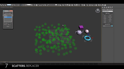 Replacer也是一款替换对象的max脚本工具。用户可以按对象输入百分比,也可以输入随机比例值,以此来替换对象并复制位置、旋转、比例和可见性动画。被替换掉的对象放置在名为“Replacer_Old”的图层中。