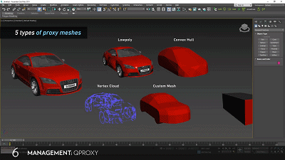 Q-proxies是一款用于场景优化的即时代理网格工具,是3ds Max独立渲染器代理几何的强大生成器和管理器,能够改善场景的视窗性能,并立即减少文件大小,提高工作效率。
