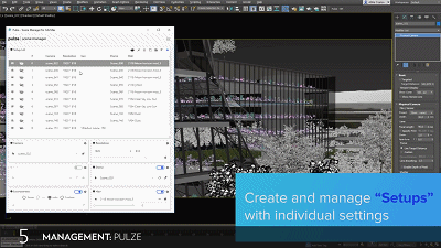 Pulze | Scene Manager(场景管理器)是3D艺术家和建筑师使用的直观且省时的工具,它把分散在3ds Max中的所有重要设置集中在一个统一的界面中,与3ds Max、V-Ray、Corona高度兼容。拥有类似于移动应用程序的用户界面,模块化的选项,通过内置浏览器搜索并应用HDRI,批量渲染、基于规则的渲染输出、“获取设置”功能加速工作流程等。