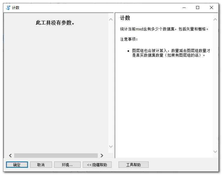 所以有了这个工具 ,可以帮助统计数据集(图层)的数量。