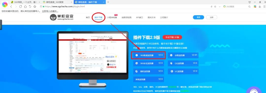 我们掌柜查查的官网上提供一键安装的功能,在插件下载页面点击您的电脑上对应的浏览器按钮,这里以360极速浏览器为例,如下图: