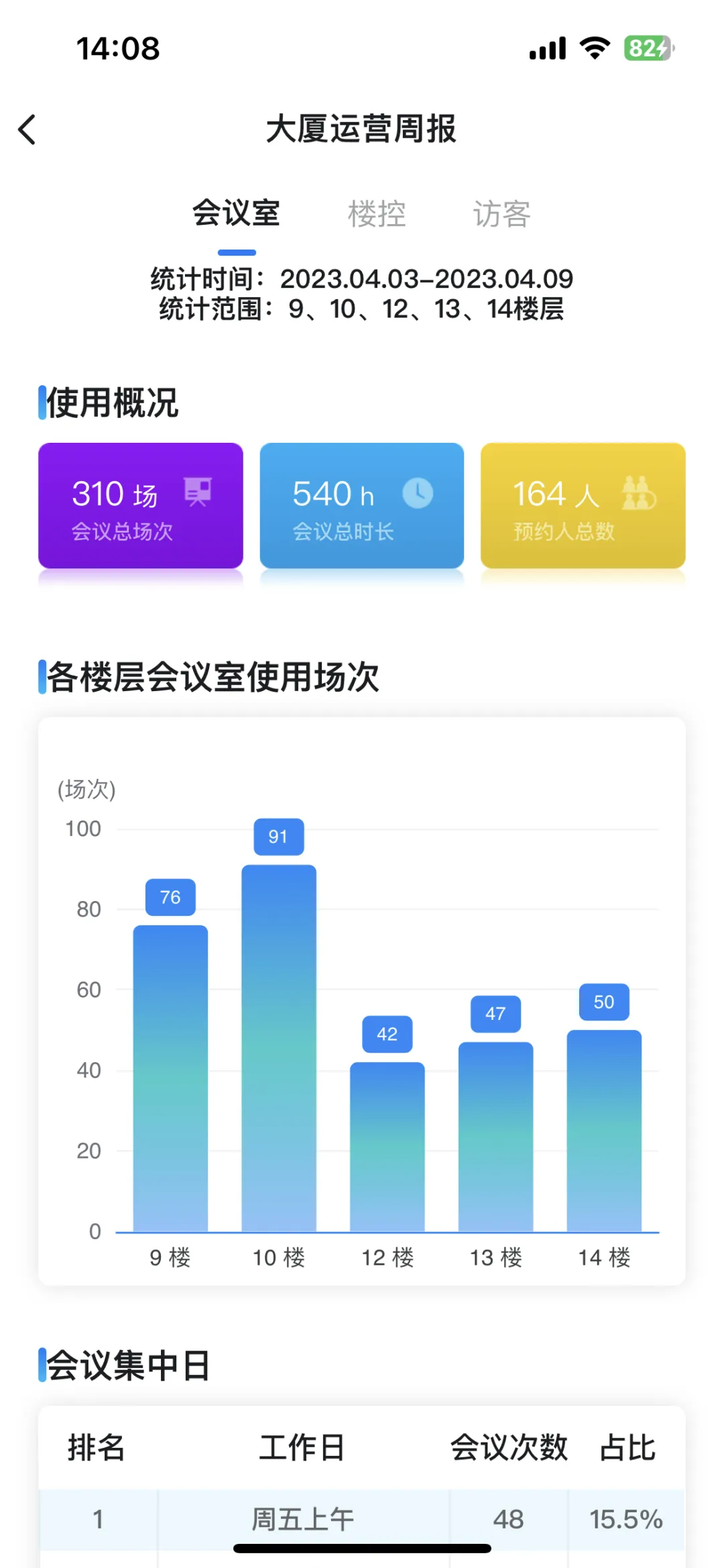 参会次数、楼控次数、访客记录、门禁记录等大数据统计分析,为管理者决策提供可靠依据。