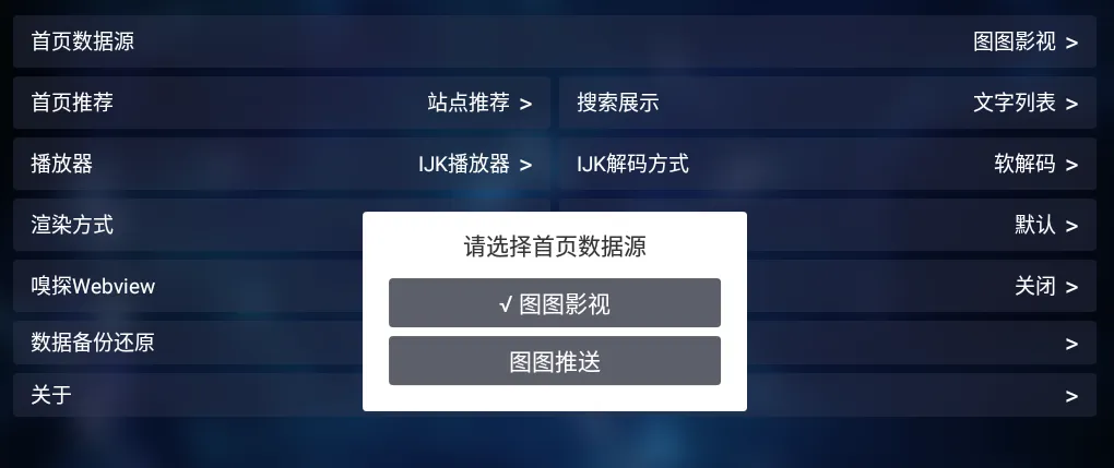 TV端,还是类似猫视频的软件框架,但图图TV有自己的电影源,内置电影源,不需要手动导入。