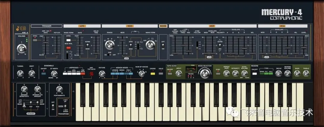 Mercury-4忠实的建模了1978年的ROLAND经典合成器Jupiter-4,让我感到喜出望外的是,这一轮建模居然捎带上了Tape Echo RE-201,价格由$49美元促销到了$29美元,真的HOLD不住了!