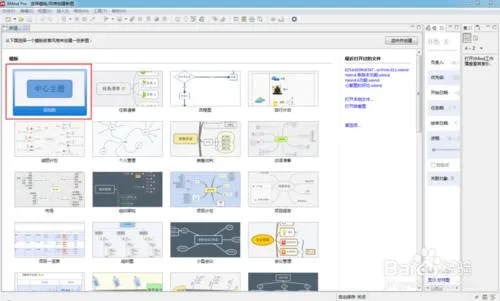 打开XMind软件,将会打开Xmind模板欢迎界面,创建中心主题的方式有两种: