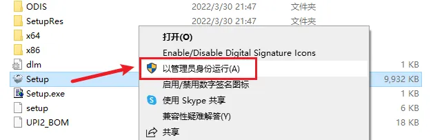 3.点击CAD2023文件夹里面的Setup.exe程序,鼠标右键“以管理员身份运行”