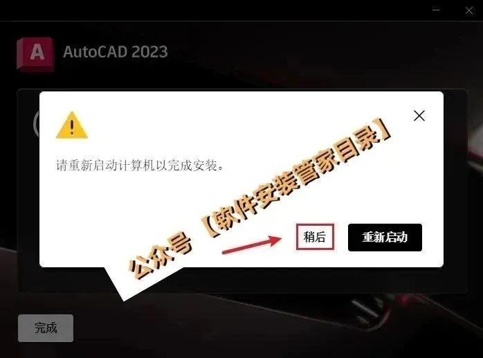 7.如果提示重启,点击稍后