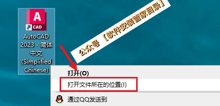 11.鼠标右击桌面【AutoCAD 2023 – 简体中文 (Simplified Chinese)】图标,选择【打开文件所在的位置】。
