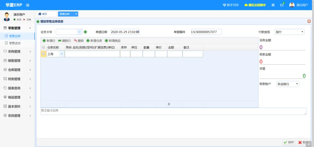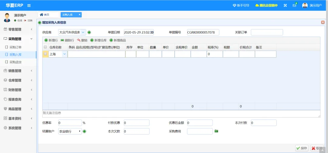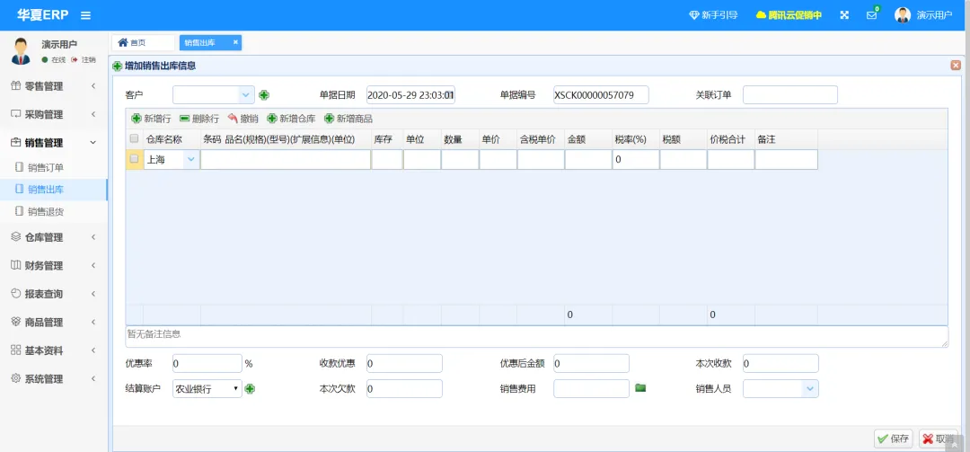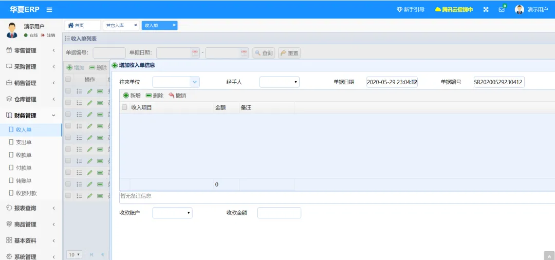 演示地址:http://47.116.69.14 演示账号:jsh,密码:123456