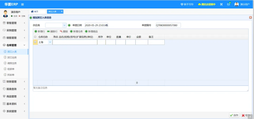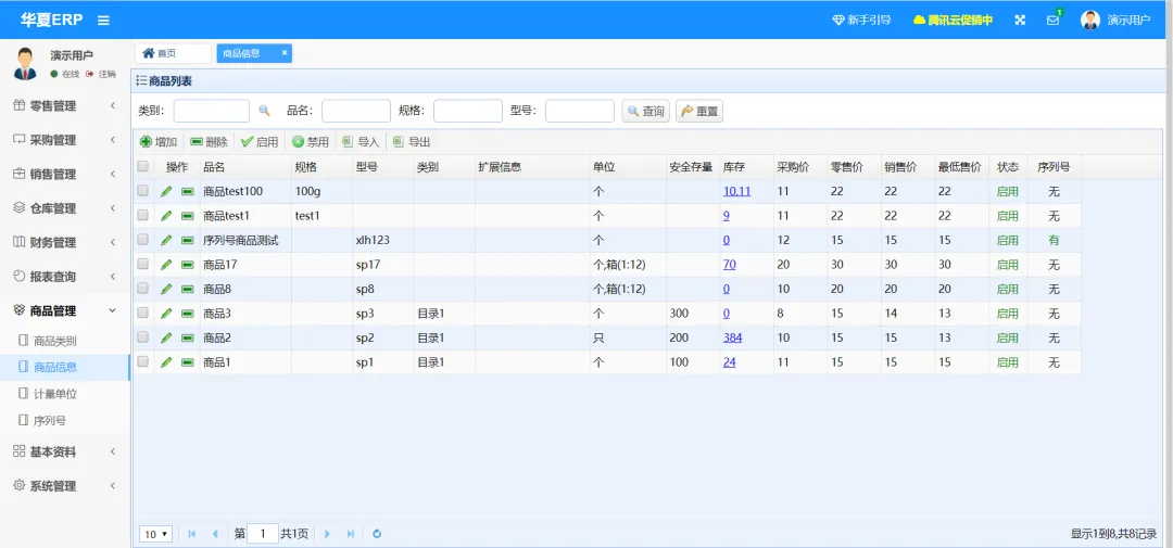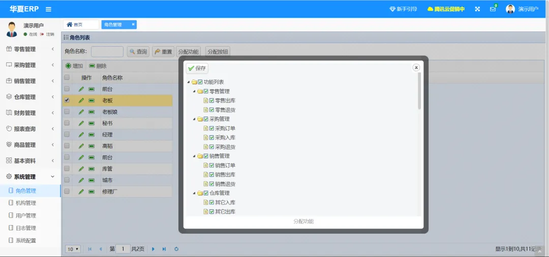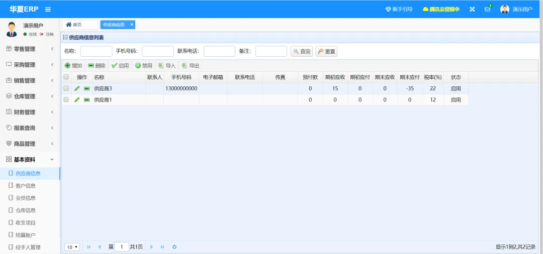 华夏ERP基于SpringBoot框架和SaaS模式,立志为中小企业提供开源好用的ERP软件,目前专注进销存+财务+生产功能。主要模块有零售管理、采购管理、销售管理、仓库管理、财务管理、报表查询、系统管理等。支持预付款、收入支出、仓库调拨、组装拆卸、订单等特色功能。拥有库存状况、出入库统计等报表。同时对角色和权限进行了细致全面控制,精确到每个按钮和菜单。