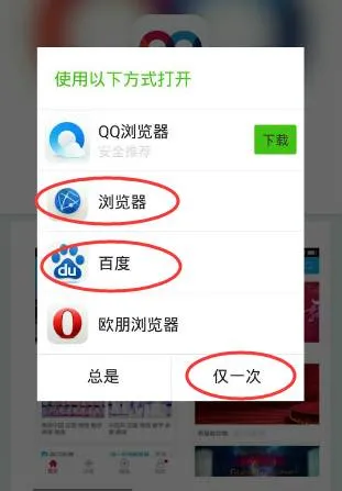 4.选择浏览器或者百度然后点击“仅一次”