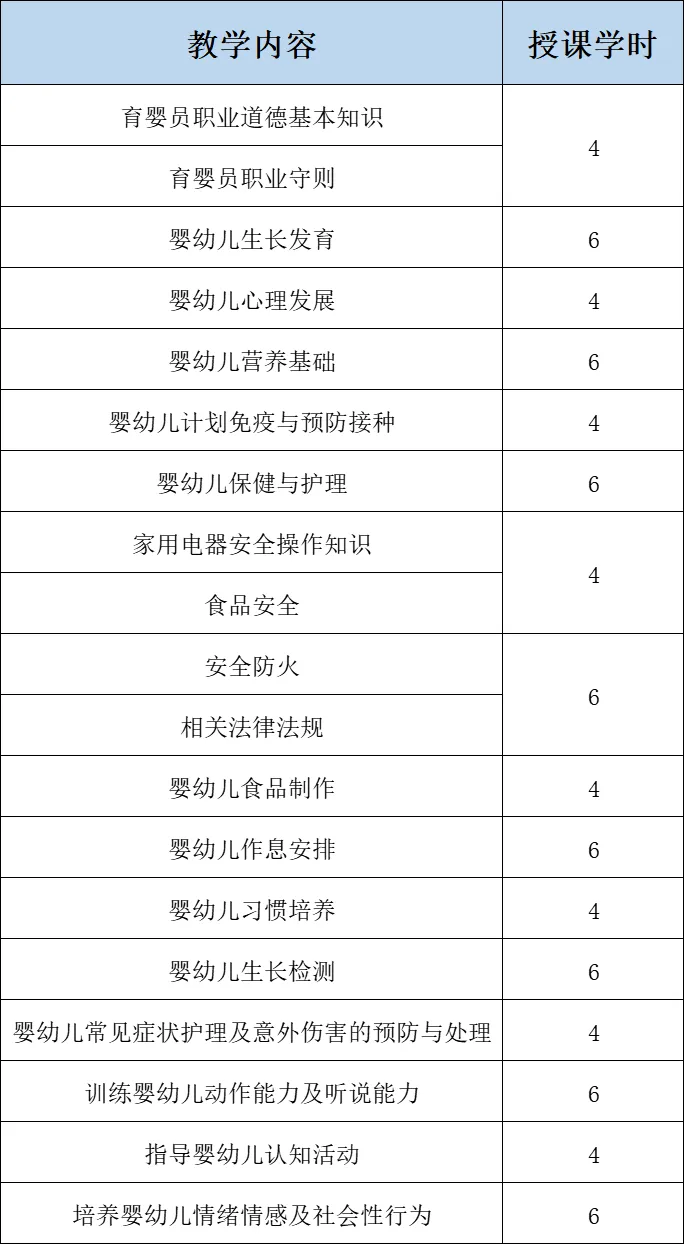 育婴员上课时间