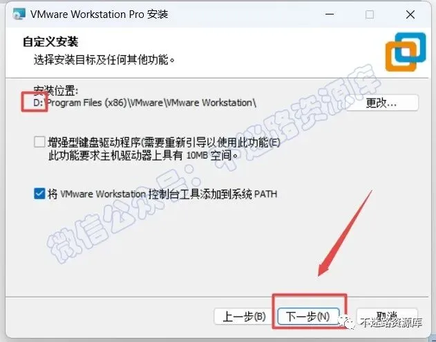 5.选择软件安装路径,建议和教程中的保持一致,本例安装到D盘(将路径地址中的首字符C改为D表示安装到D盘,安装路径不要出现中文),点击“下一步”