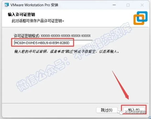 11.输入一组许可证密钥:MC60H-DWHD5-H80U9-6V85M-8280D,点击“输入“