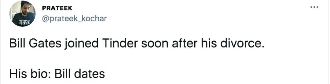 比尔·盖茨离婚后不久就玩起了Tinder,他的个人简介是和比尔·盖茨约会。