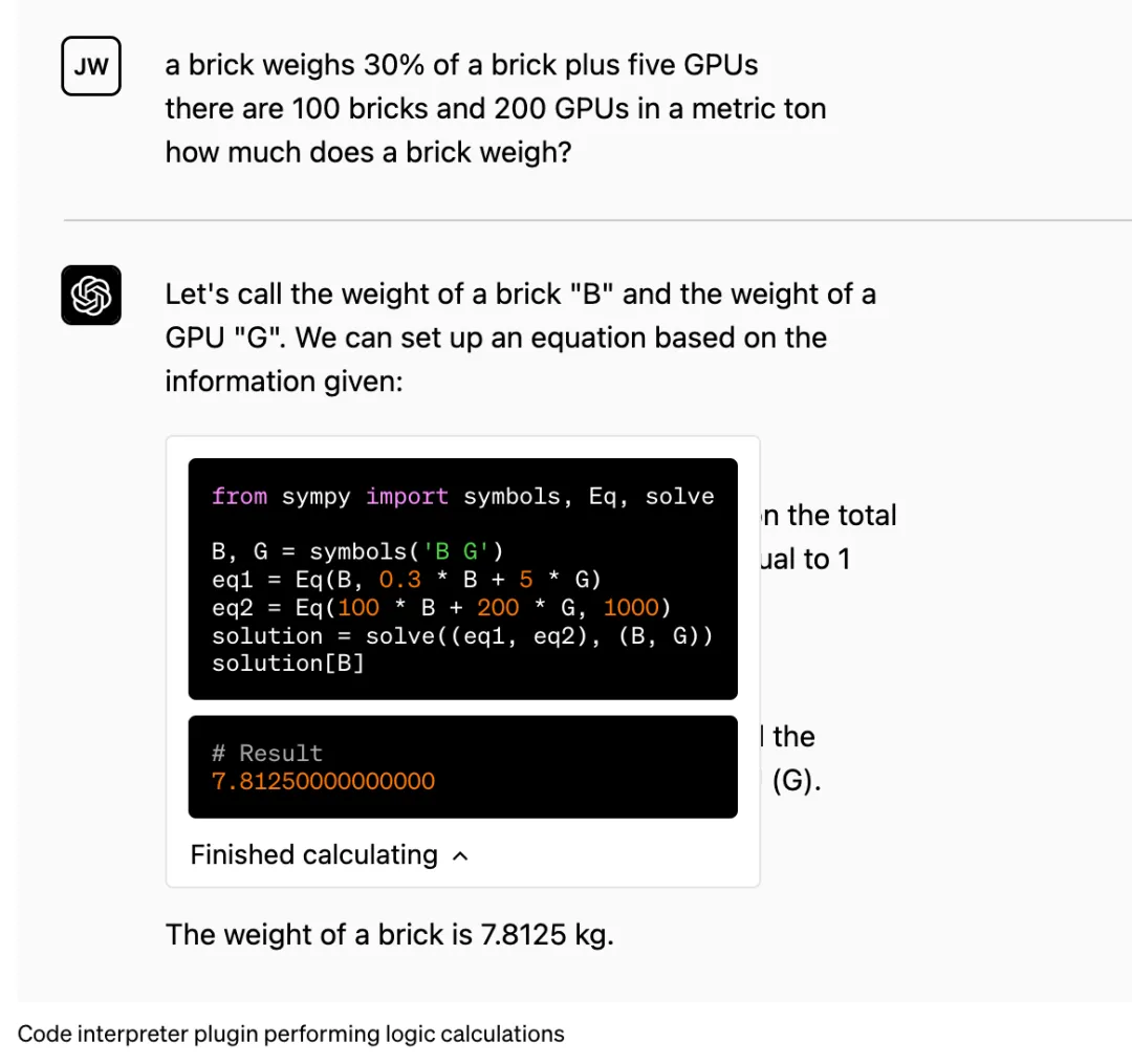 比如ChatGPT为人诟病的数学计算能力,由于需要一定的prompt(问答模板)让其理解数学问题,ChatGPT的运算效率一直不高。但假若ChatGPT插件接入了数学知识引擎Wolfram Alpha,运算问题就迎刃而解。