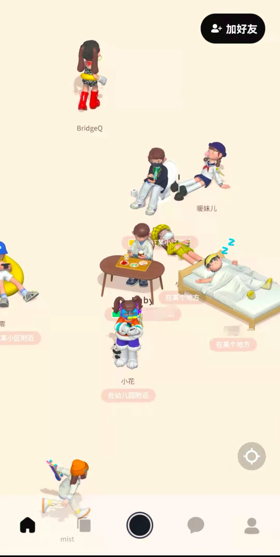 等到下午陆续出门,周行和几个朋友互相开启了实时定位的功能。啫喱上的实时位置共享,被很多用户调侃为“查岗神器”,也更适用于熟人社交。