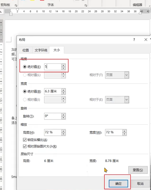 修改高度和宽度的绝对值,输入需要统一数值,点击确定!