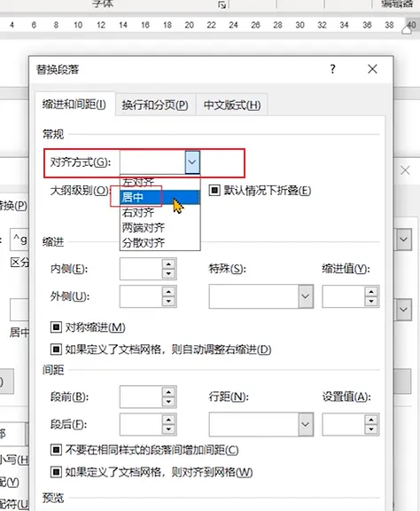 【段落】中,【对齐方式】选择【居中】点击确定!