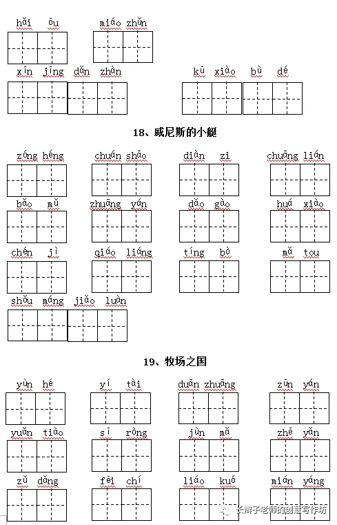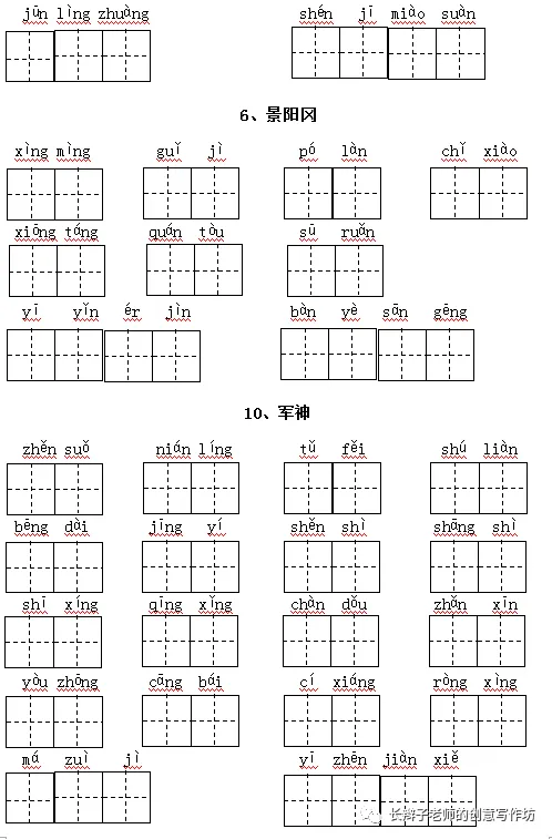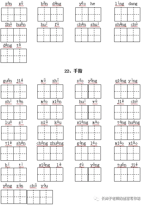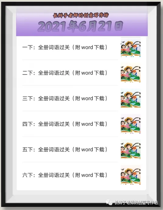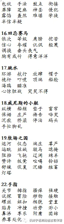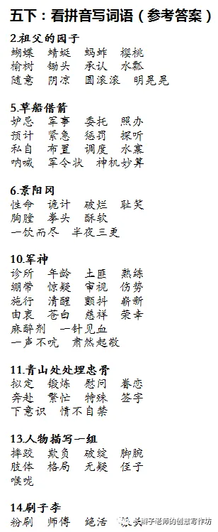 若需要Word文档,请关注微信公众号“长辫子老师的创意写作坊”,在首页留言区写下8个字——五下全册词语过关,便会自动弹出提取链接。
