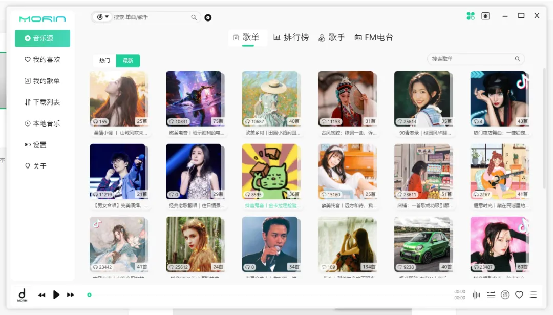 【魔音 MORIN】是一位个人开发者为学习研究开发的聚合几个主流音乐平台在线音乐播放器,颜值不错,歌单和榜单也是齐全,有PC版和安卓版。仅为学习目的使用,勿作它用。