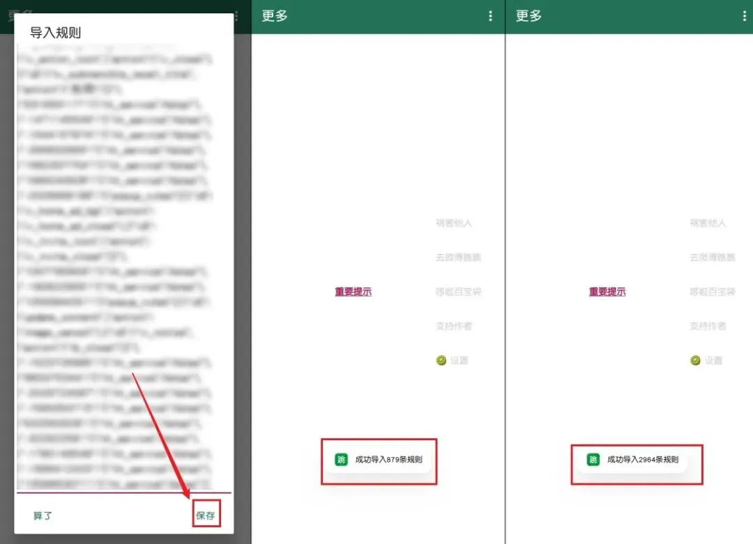 两个规则都是一样操作方式,导入成功后就可以开始使用啦!