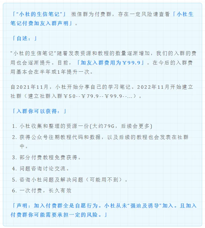 2. 微信群」:付费社群。添加小杜好友,加友请知:加友须知!!,加入社群请查看小杜生笔记付费加友入群声明。