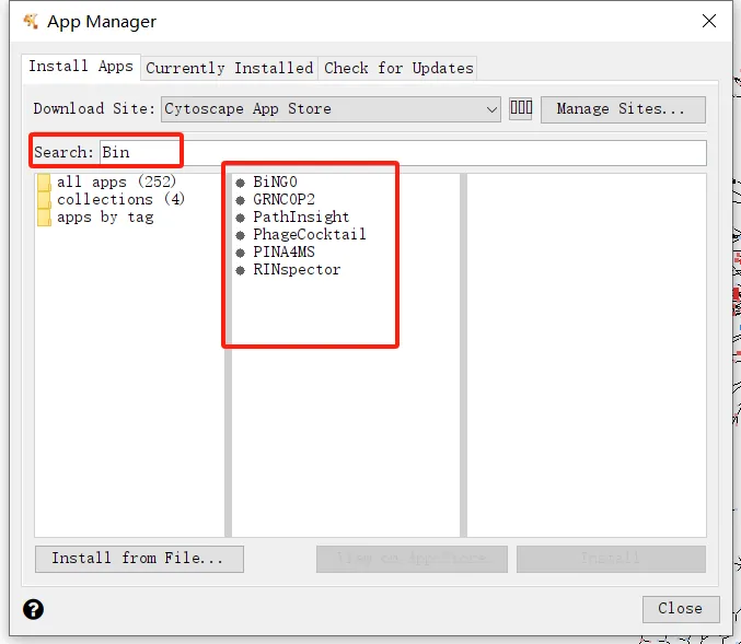 目前,Cytoscape中总的有252个插件 -