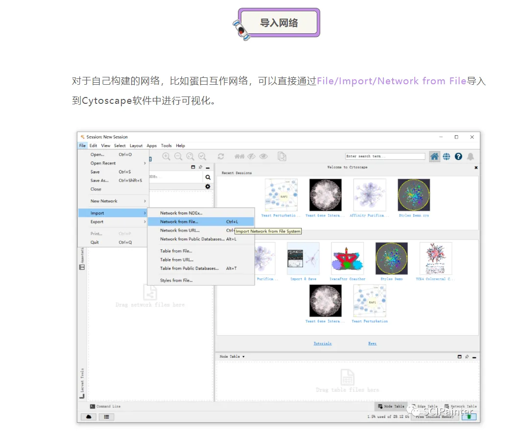 对于初学者,我们这里借用SCIPainter(基迪奥)中莫北老师的教程进行操作,对于初学者很是的友好.网络图分析工具Cytoscape快速上手